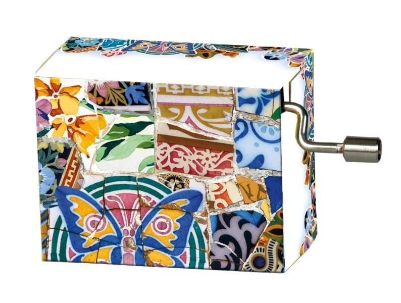 Cutiuta muzicala tip flasneta cu ilustratie mozaic