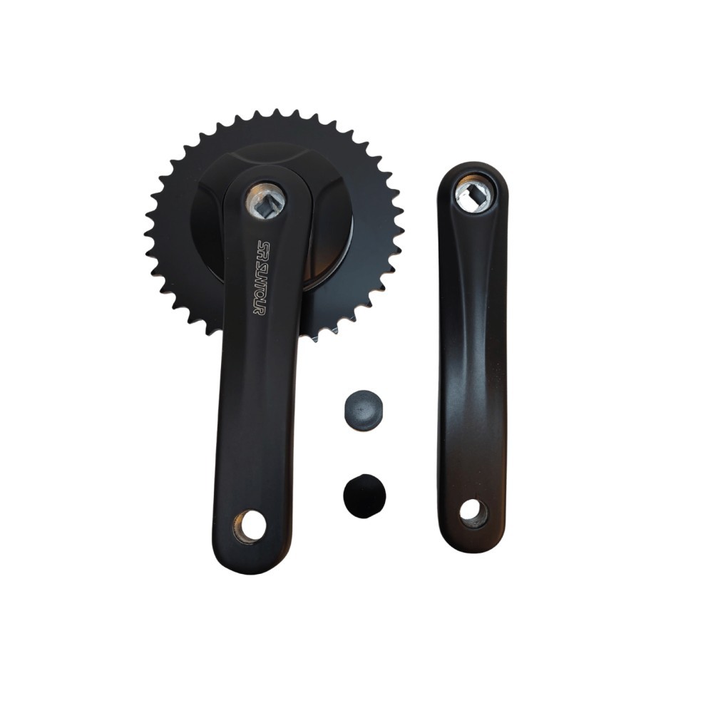 Foaia de angrenaj model CW17-SCX-S38 are 38 de dinti si este realizata din otel cu finisaj negru. Este parte a unui crankset, avand bratul pedalier cu lungimea de 170 mm si aspect mat negru. Discul are diametrul de 110 mm, de asemenea finisat mat negru, completand astfel ansamblul intr-un design unitar si robust.