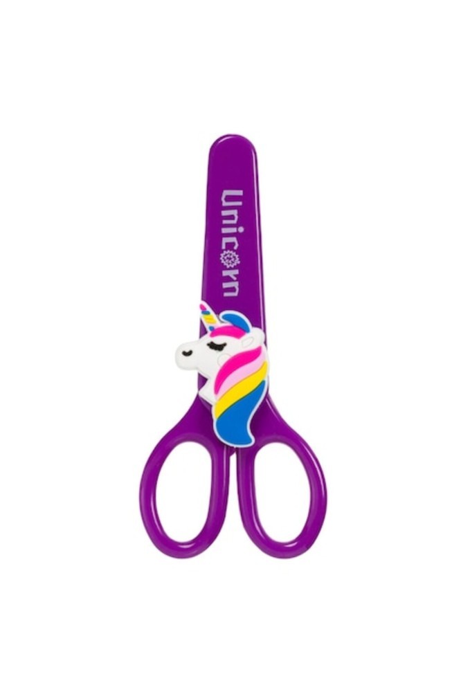 Imaginația întâlnește funcționalitatea cu foarfecele școlare, cu un design 3D cu unicorn și o nuanță vibrantă de violet.; Perfecte pentru micii visători.; Include o husă de protecție pentru depozitare în siguranță, prevenind accidentele nedorite.; Măsurând 14 cm, aceste foarfece sunt ideale pentru mâinile mici, asigurând un control excelent.; *AVERTISMENT! Pericol de sufocare.; Nu sunt potrivite pentru copiii sub 3 ani din cauza componentelor mici care pot fi înghițite.