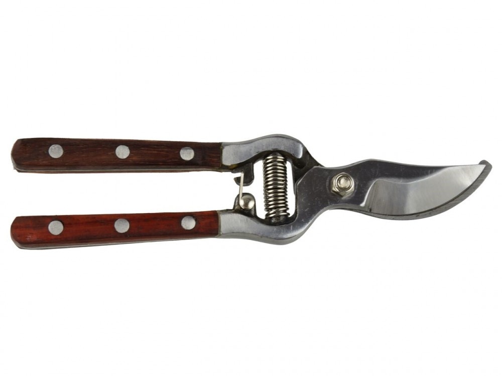Caracteristicile produsului:. lamele sunt fabricate din otel HCS de inalta calitate. lungimea totala a foarfecii de taiere 200 mm. un manechin cu insertii din lemn. perfect pentru taierea florilor, lastarilor de arbori si arbusti etc.. Specificatie tehnica:. Diametru maxim de taiere: 25 mm. Materialul lamei: otel HCS. Materialul manerelor: otel, lemn. Tipul lamei: foarfece. Lungimea totala: 200 mm. Lungimea lamei: 60 mm. Lungimea manerului: 90 mm. Aplicatie: taierea florilor, crengi mici, lastari de copaci si arbusti