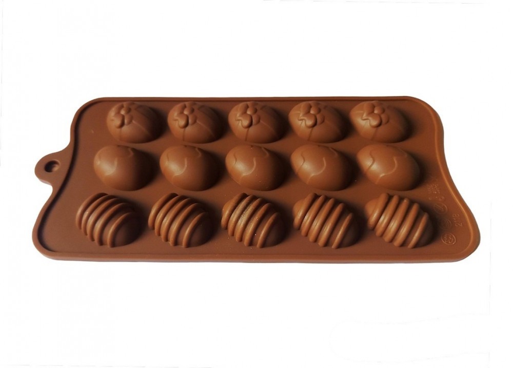 Forma silicon pentru bomboane, 15 cavitati, Oua, Maro, 22 cm, 295COF