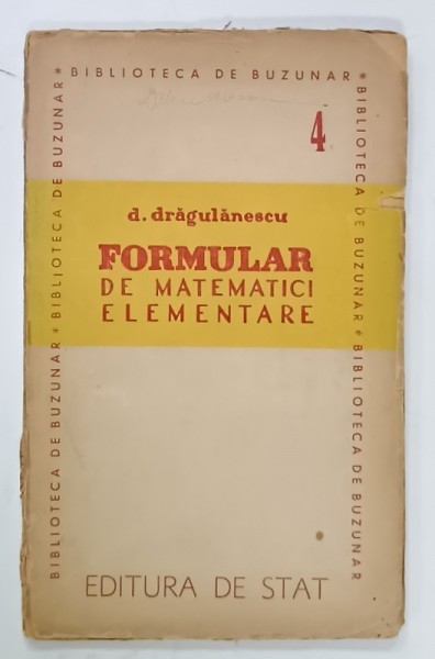 FORMULAR DE MATEMATICI ELEMENTARE de D. DRAGULANESCU , VOL. I : MATEMATICI ELEMENTARE , 1946
