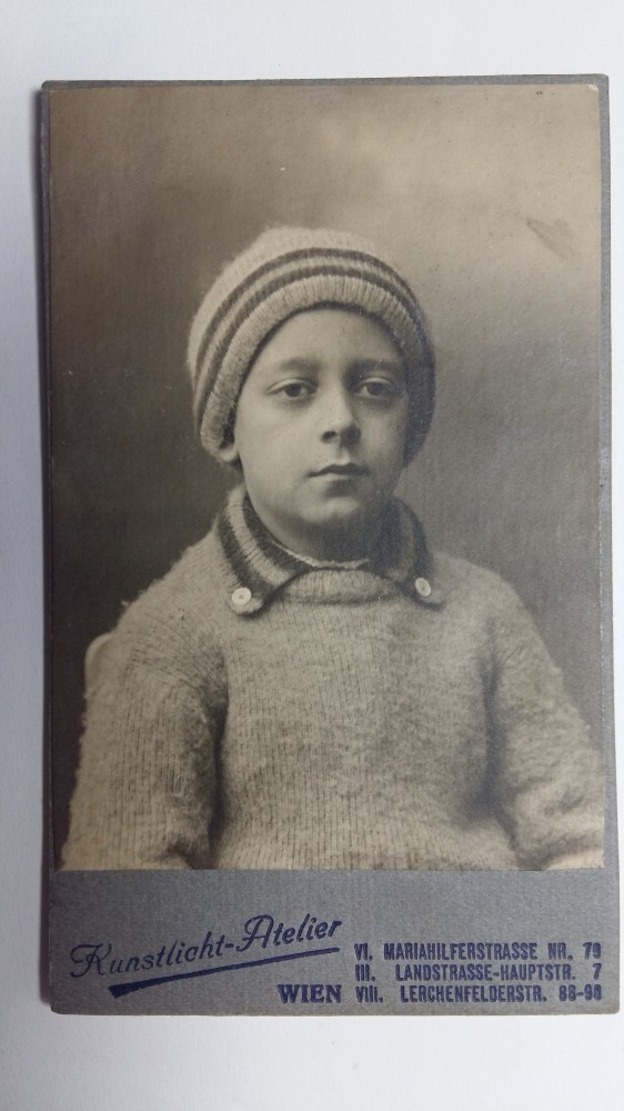 FOTOGAFIE VECHE - FORMAT CDV - BAIETAS IMBRACAT DE IARNA - SFARSIT DE SEC XIX