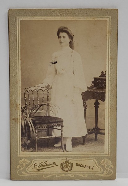 FOTOGRAFIE C.D.V. , STUDIO L. WAISMAN , BUCURESTI , TANARA CU ROCHIE ALBA , SFARSITUL SEC. XIX