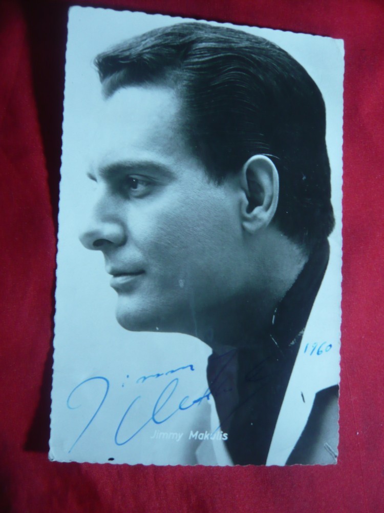Fotografie de Studio a cantaretului Jimmy Makulis, autograf si dedicatie 1960