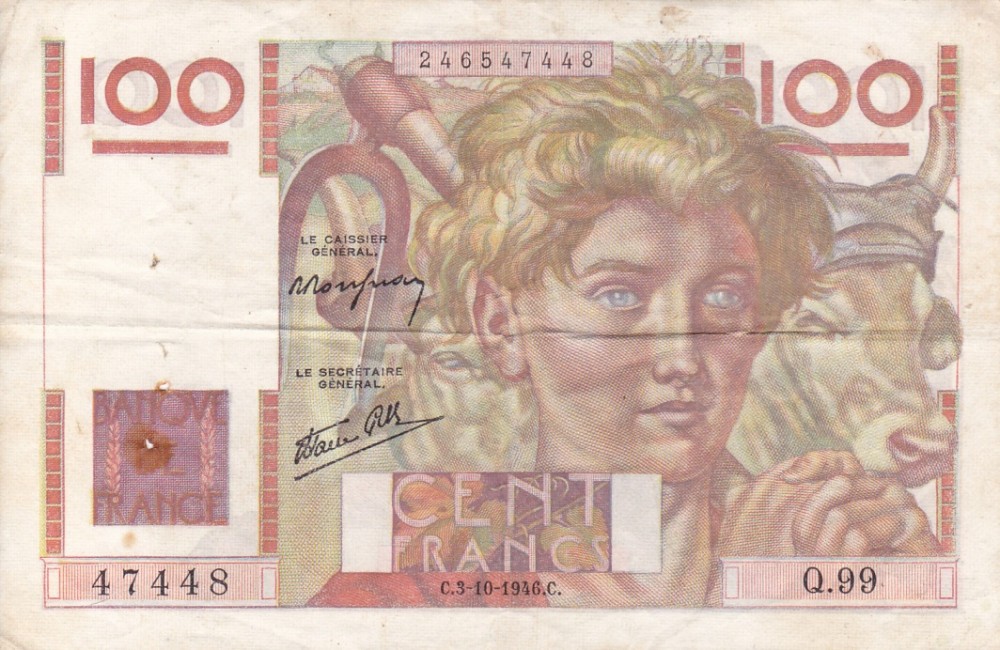 FRANTA 100 francs 3-10-1946 VF!!!