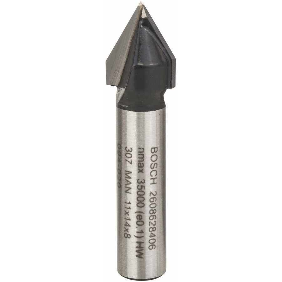 Freza canelat lemn in forma de V Bosch, 11x14x45 mm, tija 8 mm, 60°
