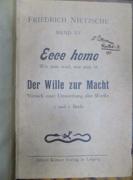 Friederich Nietzsche, Ecce Homo, Leipzig 1911