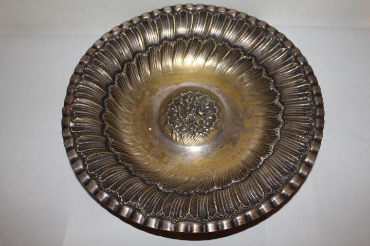 fructiera veche din alama, stare foarte buna, diametru 33 cm, inaltime 7 cm