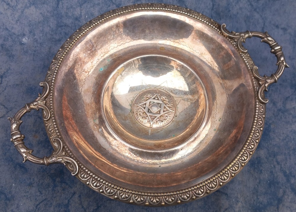 fructiera veche din alama argintat