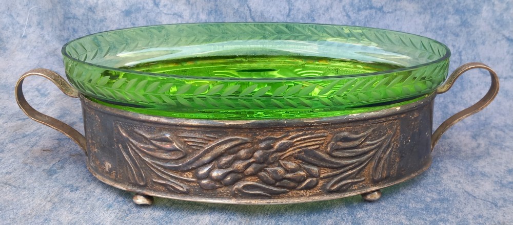 fructiera veche din alama argintata si sticla ARADEANCA