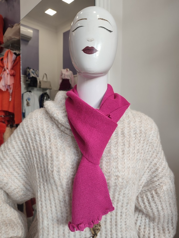 Fular roz tricotat Confectionat din material moale si calduros pentru confort maxim. Design tricotat ce adauga textura si stil. Culoare roz, usor de asortat. Potrivit pentru diverse stiluri de purtare.