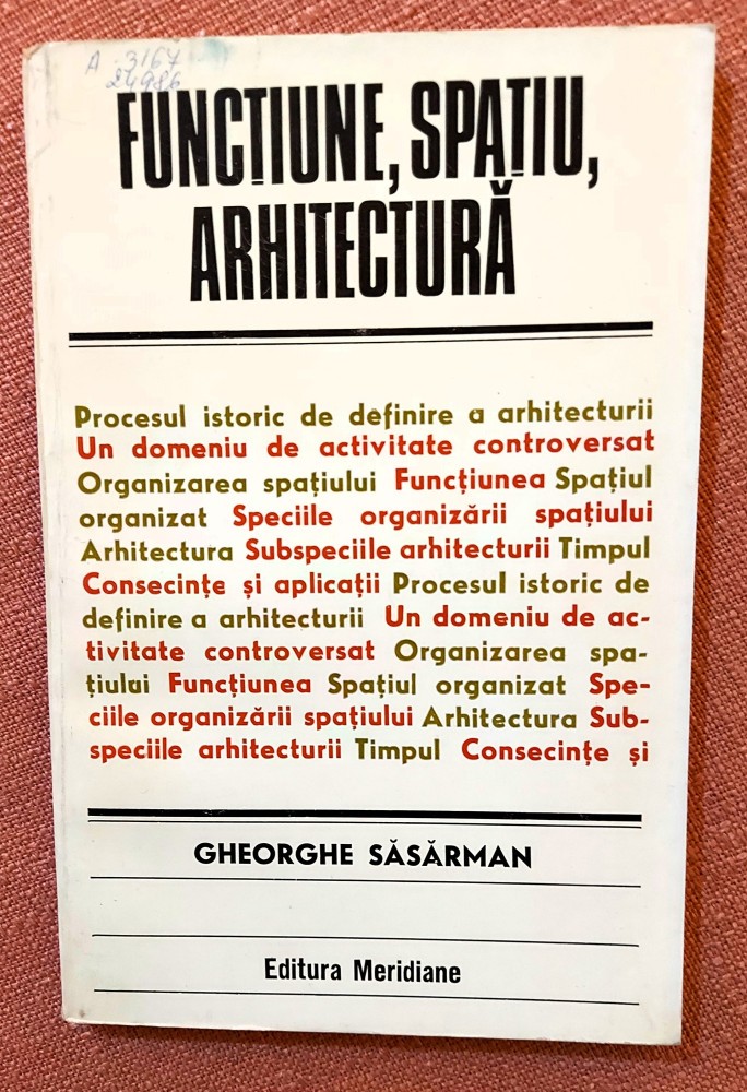 Functiune, spatiu, arhitectura. Editura Meridiane, 1979 - Gheorghe Sasarman
