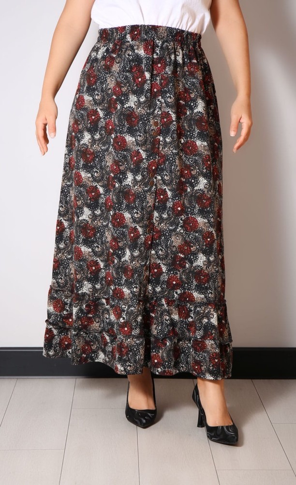 Fusta lunga cu doua volane accesorizata cu nasturiMaterial: Jerse Imprimat.Marime Universala ,se potrivesc de la M la 10XL ( 42 la 60) EUFara Captuseala , Materialul nu necesita!Potrivit pentru sezon.