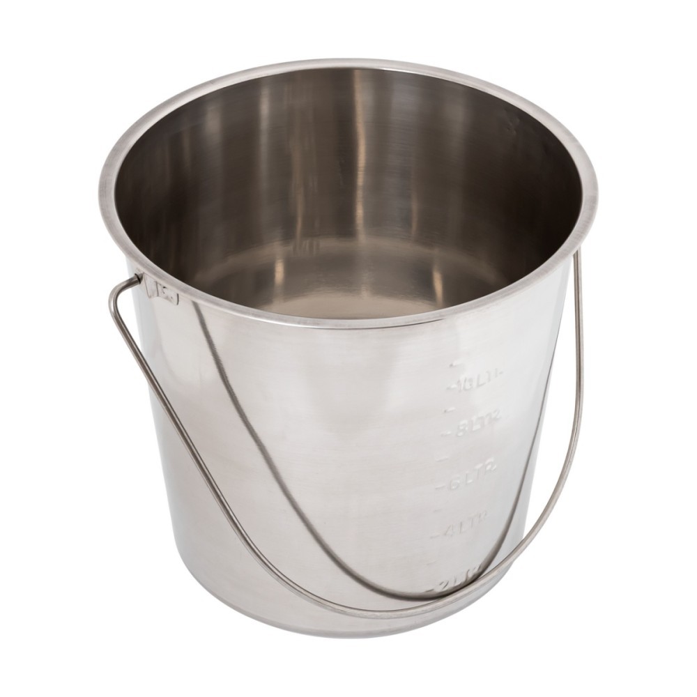 Găleată din inox, cu capacitate de 12,3 litri, prevăzută cu marcaje de volum. Ideală pentru utilizare în domeniul alimentar sau agricol. Găleata din oțel inoxidabil este potrivită în situații care cer igienă ridicată, cum ar fi procesarea alimentelor sau gestionarea laptelui în ferme. Comparativ cu recipientele din plastic, acest tip de vas nu se deformează, nu eliberează compuși și rezistă la temperaturi înalte. Materialul este durabil, suportă dezinfectări frecvente și este potrivit pentru utilizare intensivă pe termen lung. Este fabricată din oțel inoxidabil AISI 201, un material care asigură rezistență deosebită la coroziune. Interiorul și exteriorul lustruit oferă o suprafață netedă, care se curăță ușor și nu reține mirosuri sau reziduuri. Gradațiile sunt embosate direct pe peretele găleții, permițând verificarea rapidă a volumului aproximativ. Volum total: 12,3 litri. Volum util: 11 litri.