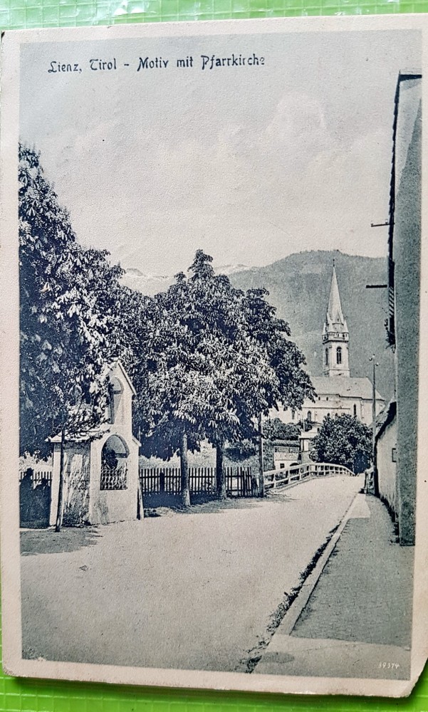 G371C-I- Carte postala circulata 1918-Nobilul Colonel Joseph Leidl Colonel KUK imperiul austriac cu ștampila militara kuk de razboi. Pe fata Biserica parohiala Lienz, Tirol, Austria actual. Stare generala buna, un colt lipsa. Marimi: 14/ 9 cm.