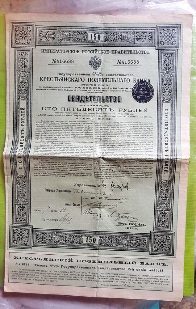 G390-I-Certificat Actiuni vechi Rusia 1899 Imperiul Tarist Banca funciara taraneasca-Bauer Agrar Bank. Marimi inchis: 39/ 25 cm. EXISTA 5 BUCATI. PRET PE BUCATA. IN CAZ DE COMANDA A MAI MULTE TRANSPORTUL SE INCLUDE IN PRET DCA NU SE ALEGE TRANSPORT URGENT CARGUS PRIN OLX SAU SE FACE REDUCERE 10 LA SUTA DACA SE CUMPARA TOATE.