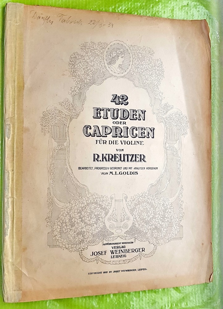 G585-Partituri R. KREUTZER Vioara 1917- 42 Studii sau Capricii-J. Weinberger Leipzig stare buna. Marimi: 30/23 cm, 87 pagini.