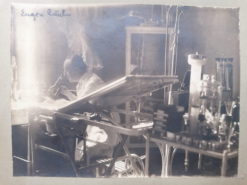 Doctorul Eugen Răutu in laborator Carton 37x27 cm foto 23x17 cm