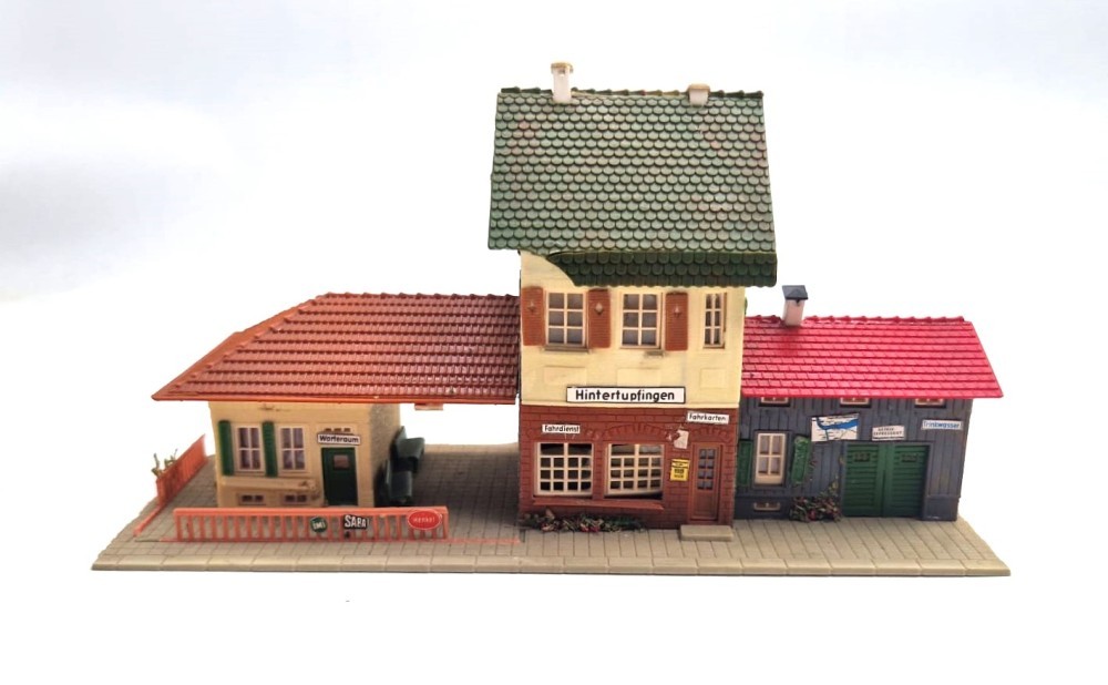 gara feroviara circuit trenulet Diorama feroviara Faller 93 HO Germania anii '80 macheta cai ferate ( mici defecte )