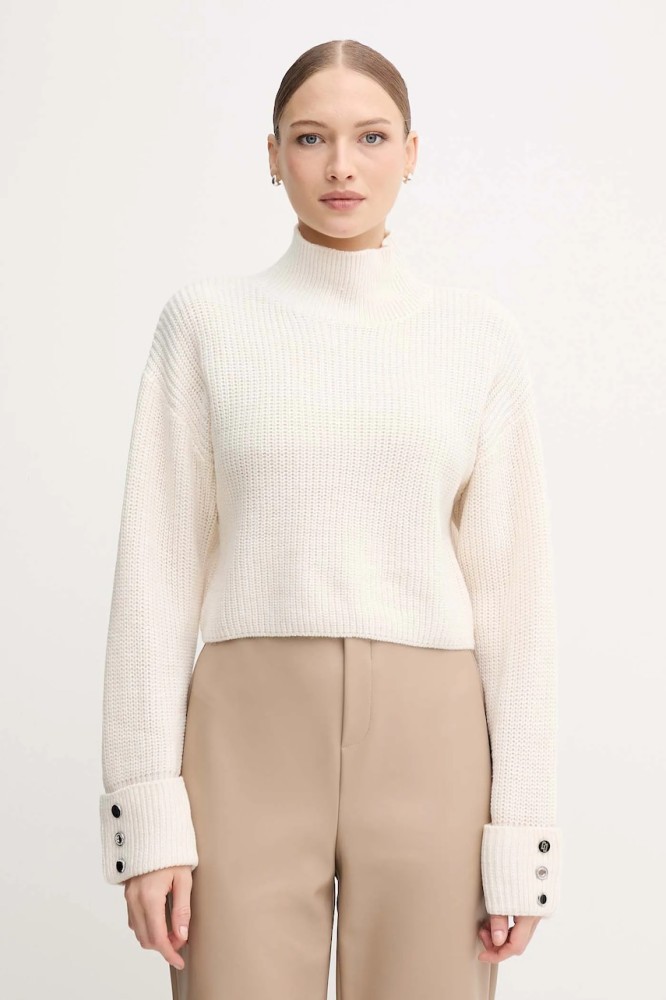 Gaudi pulover culoarea bej, călduros, cu guler, 521BD53033
