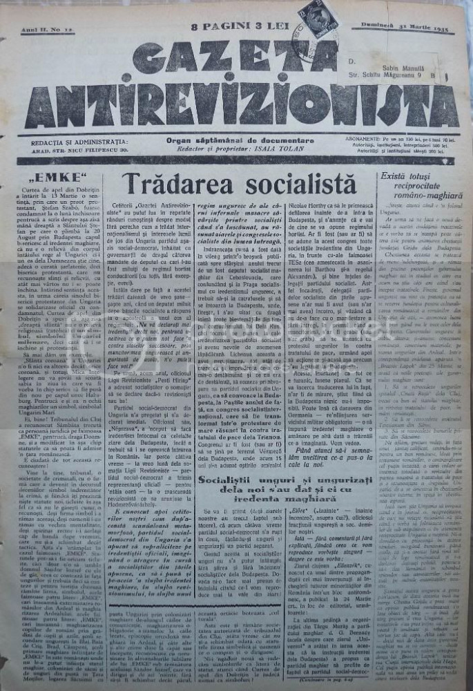 Gazeta antirevizionista , an 2 , nr 12 , Arad , 1935