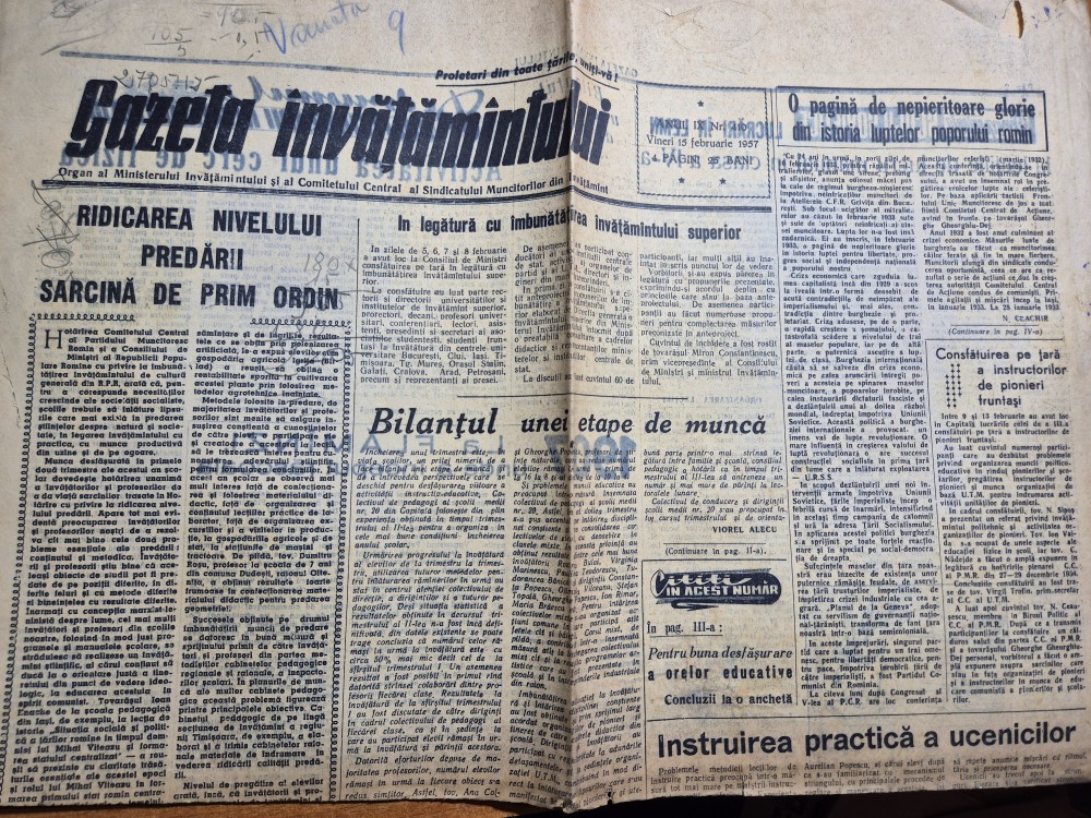 gazeta invatamantului 15 februarie 1957-la flamamzi unde a inceput rascoala