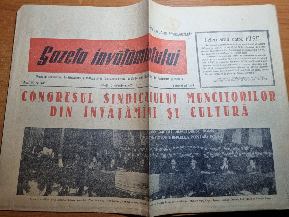 gazeta invatamantului 19 noiembrie 1957-congresul sindicatului din invatamant