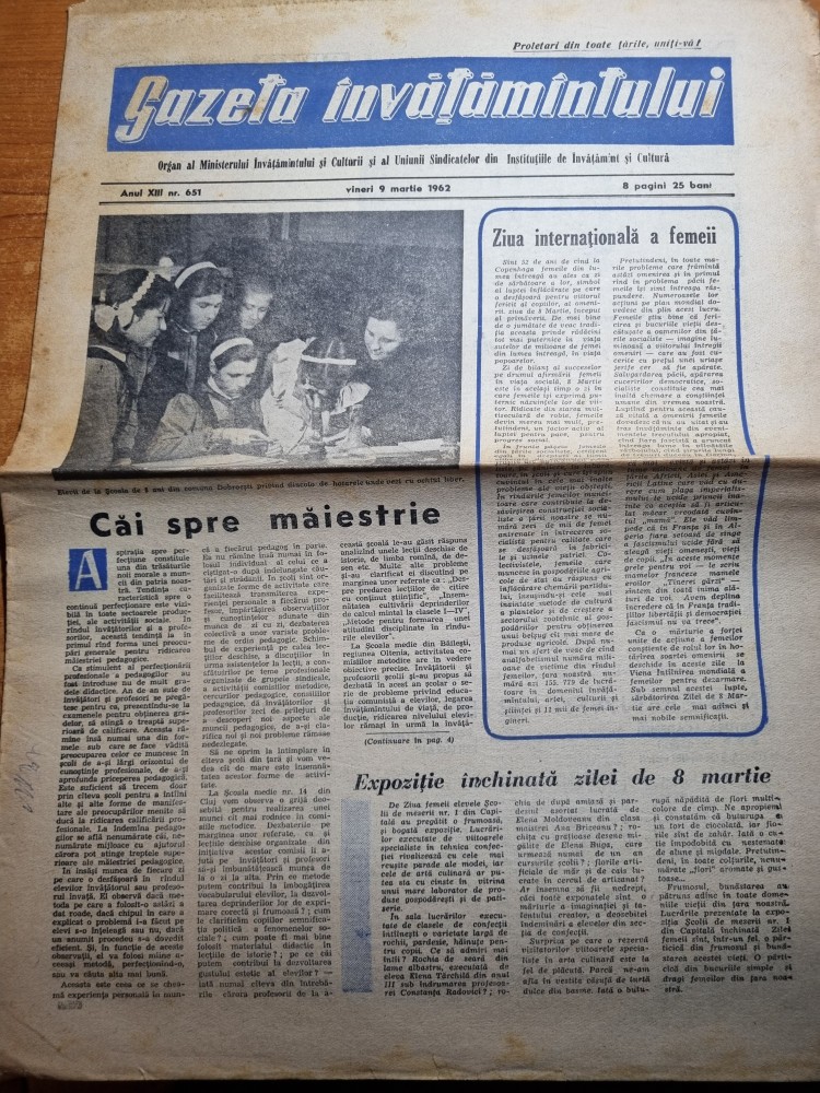 gazeta invatamantului 9 martie 1962-ziua internationala a femeii