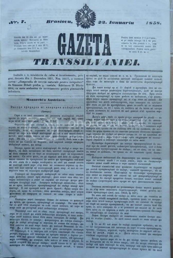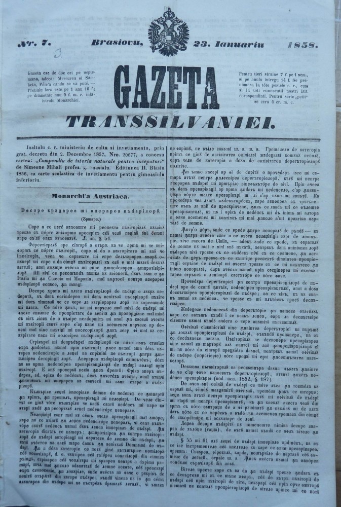 Gazeta Transilvaniei , Brasov , nr. 7 , 1858