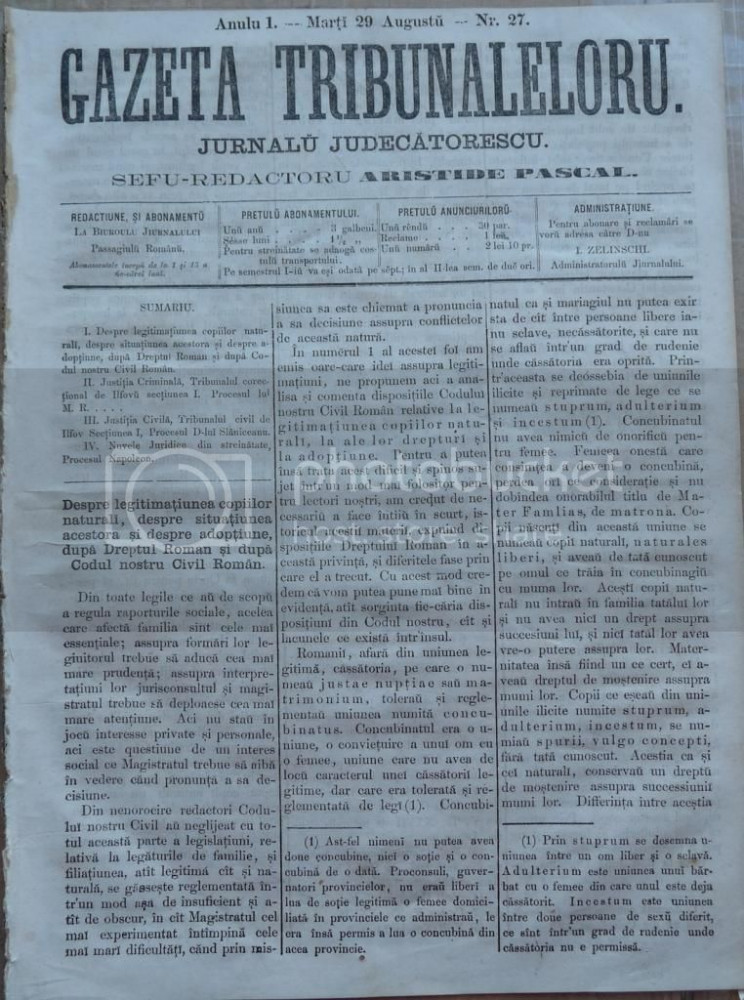Gazeta tribunalelor , nr. 27 , an 1 , 1861
