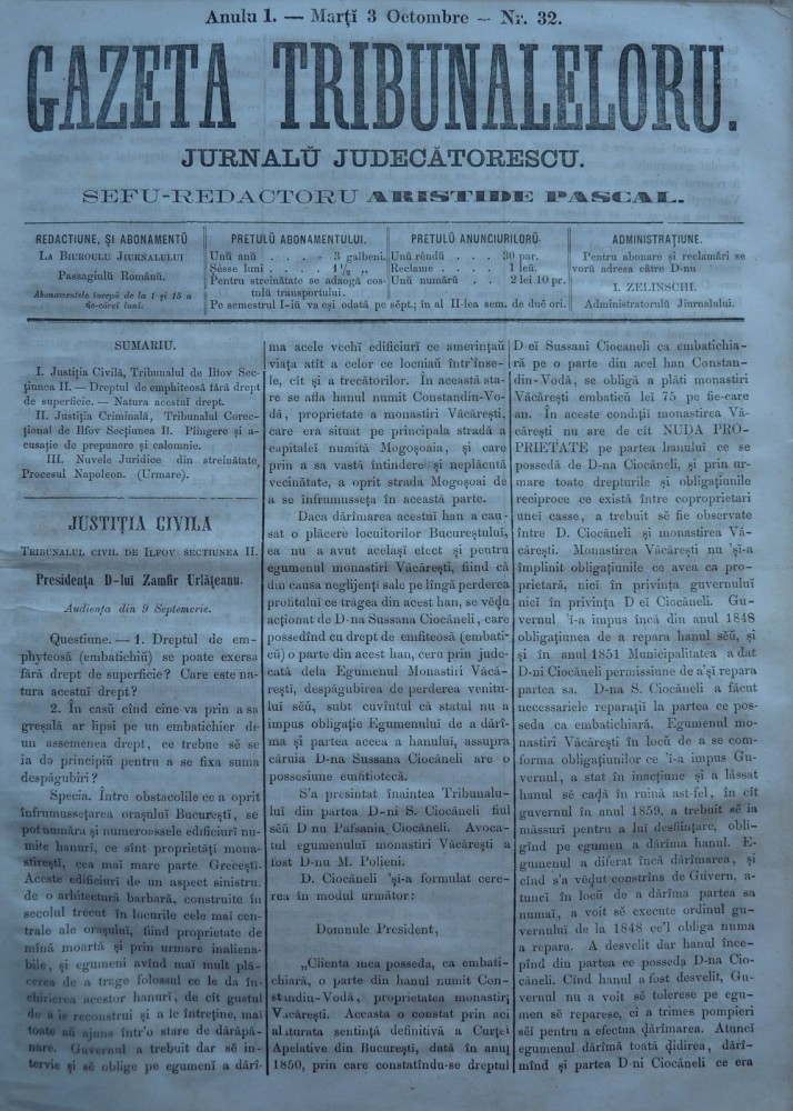 Gazeta tribunalelor , nr. 32 , an 1 , 1861