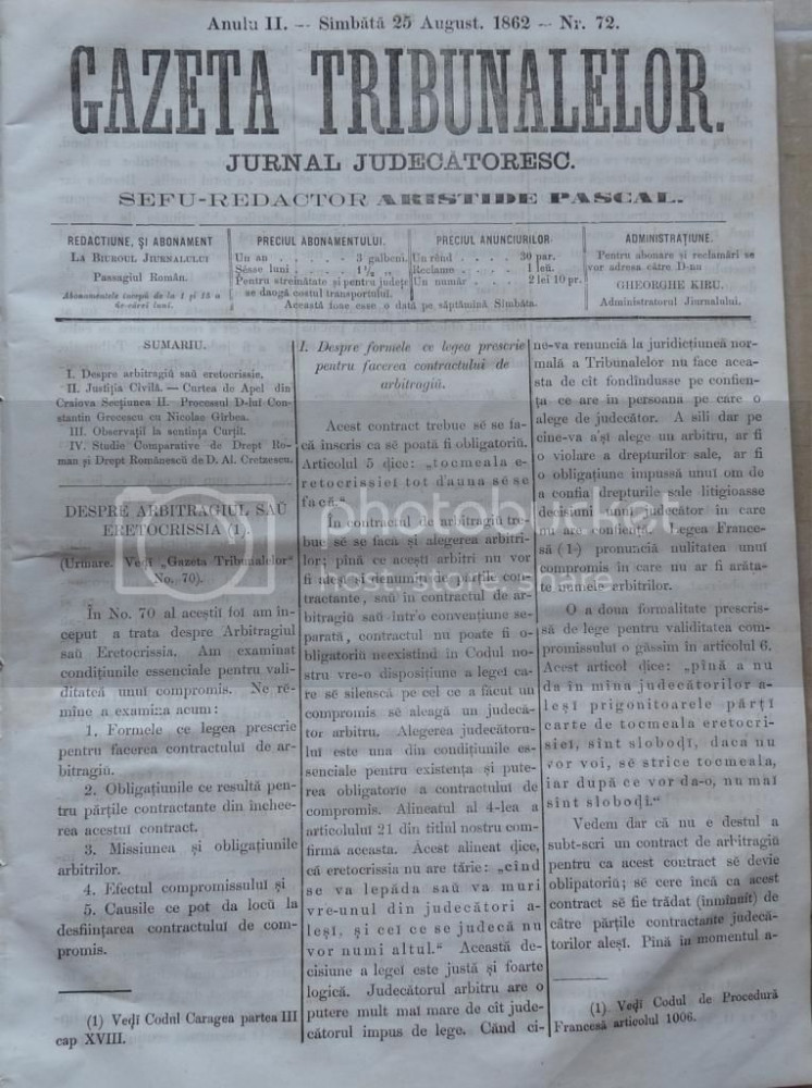 Gazeta tribunalelor , nr. 72 , an 2 , 1861