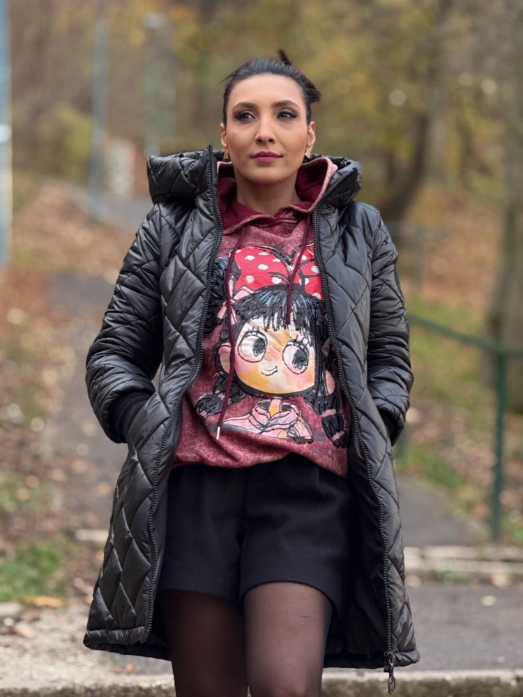 În zilele reci, în care tot ce-ți dorești este să te simți protejată, dar și elegantă, geaca lungă neagră cu emblemă devine aliatul tău de încredere. Este o piesă care îmbină perfect rafinamentul discret cu funcționalitatea, oferindu-ți căldură, confort și un aer sofisticat.