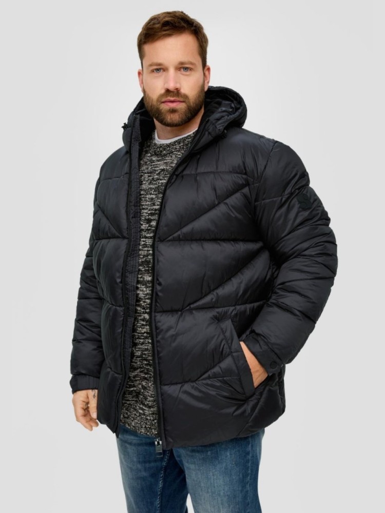 Geaca matlasata barbati big size cu gluga, Negru, 2XL