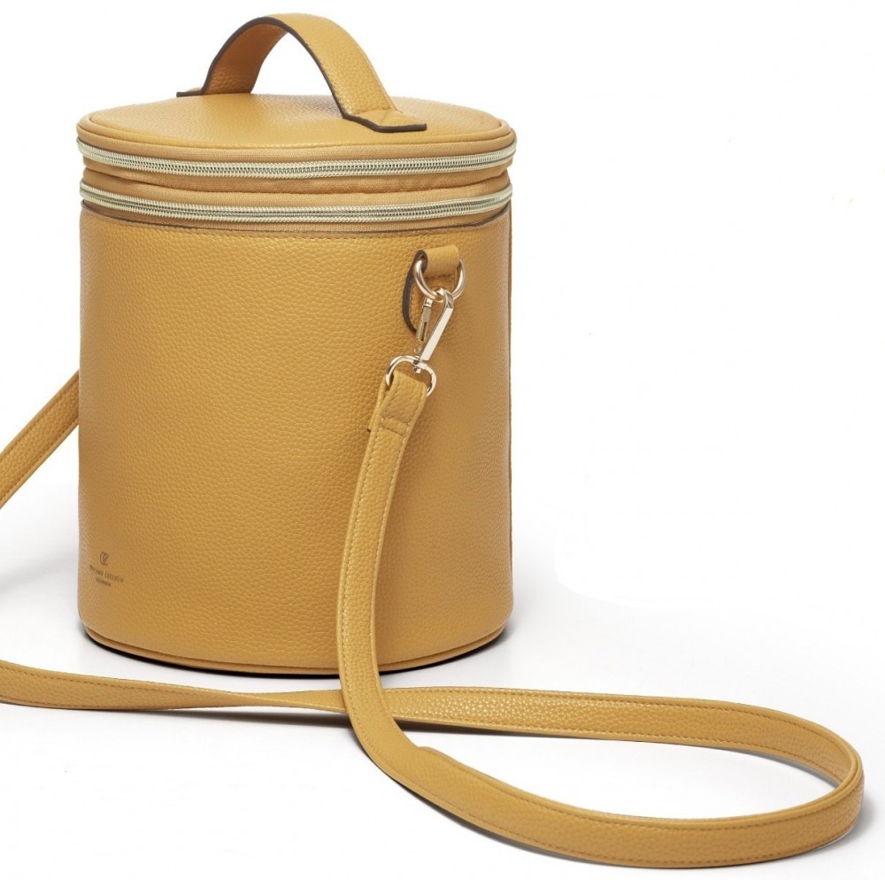 geantă de cosmetice deosebită, cu formă cilindrică, de culoare