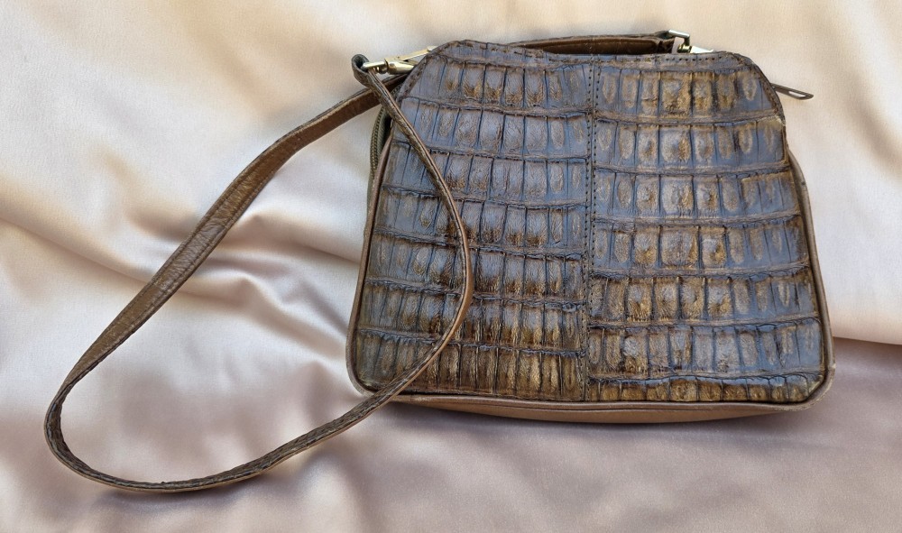 GEANTĂ DE UMĂR VINTAGE DIN PIELE NATURALA DE CROCODIL, LUCRATA MANUAL