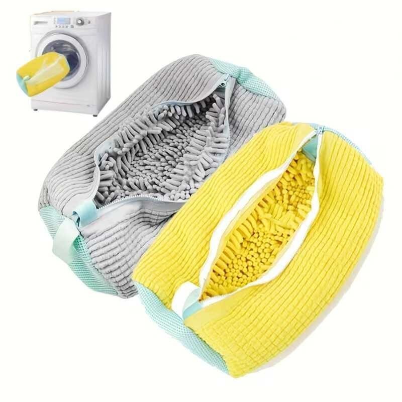 Geantă dublă pentru spălat pantofi 2-în-1, reutilizabilă, cu fermoar de siguranță – Curățare 360° în mașina de spălat și uscător