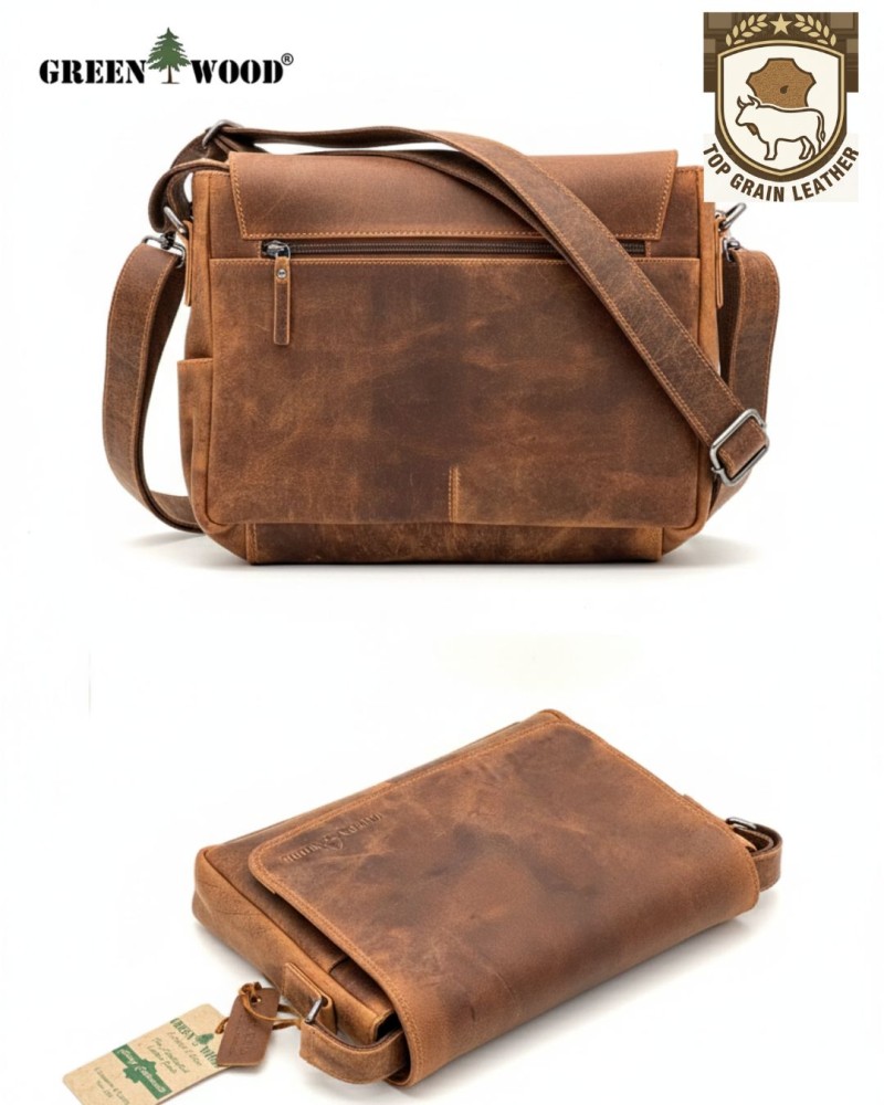 Brandul european Greenwood® Germany foloseste doar piele provenita din tabacarii certificate, prelucrata manual cu finisaje ecologice. Pielea Top Grain provine din stratul superior al pielii, unde fibrele sunt dense si naturale. Este usor slefuita pentru a indeparta imperfectiunile, pastrand elasticitatea si rezistenta naturala. Finisajul waxed pull-up adauga profunzime vizuala si protectie suplimentara, facand ca fiecare geanta sa imbatraneasca frumos, fara sa se degradeze.