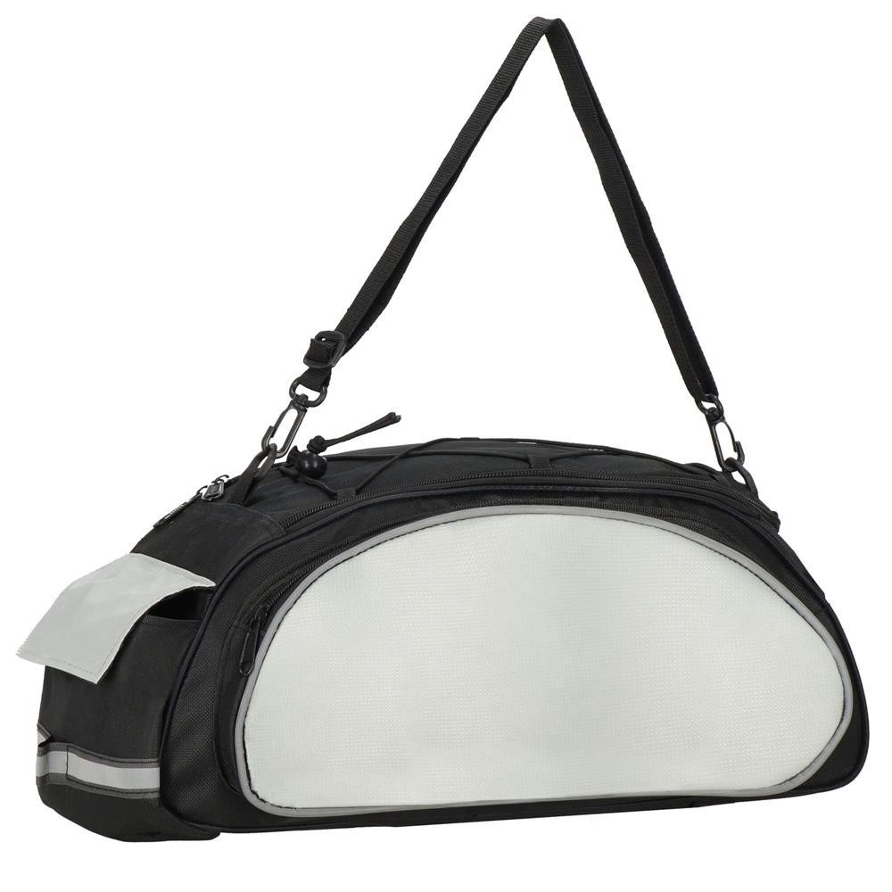 Geanta portbagaj bicicleta, 1 compartiment si 3 buzunare laterale, 40x20x17cm, negru cu elemente reflectorizante gri Household NewTrend