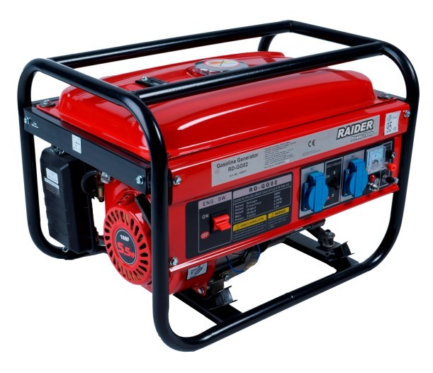 Generatorul RAIDER RD-GG02 este proiectat pentru utilizare staționară. Potrivit pentru locuri departe de rețeaua electrică, pentru vilă, într-o tabără de corturi sau cu o rulotă departe de zonele populate sau trebuie să utilizați scule electrice în locuri unde nu există electricitate. Puterea electrică maximă este de 2,2 kW, iar cea nominală - 2,0 kW la o tensiune de 220 V și o frecvență de 50 Hz. Există un contact pentru tensiune înaltă și un al doilea - pentru încărcarea unei baterii reîncărcabile cu curent continuu la o tensiune de 12 V și o putere maximă de 8,3 A. Motorul pe benzină este în patru timpi și, în consecință, are un carter cu pompă de ulei pe sistemul central de lubrifiere. Rezervorul conține 14 l de combustibil, ceea ce este suficient pentru 18 ore de funcționare la sarcină maximă. Aprinderea este magnetică și se face prin tragerea unei frânghii de pornire. Filtrul de aer este fabricat din spumă și este ușor de curățat.. Specificații tehnice:. - Putere nominală: 2000 W. - Putere maximă: 2200 w. - Capacitate rezervor: 14 L. - Consum: 1.300 l / h. - Tip generator: monofazat. - Material de înfășurare: cupru. - Magn. starter / aprindere manuală. - Răcire: aer. - Motor: "tip HONDA GX160" 4 timpi OHV (supape suspendate). - Dimensiuni: (530x400x440) mm.. - Greutate: 39 kg.