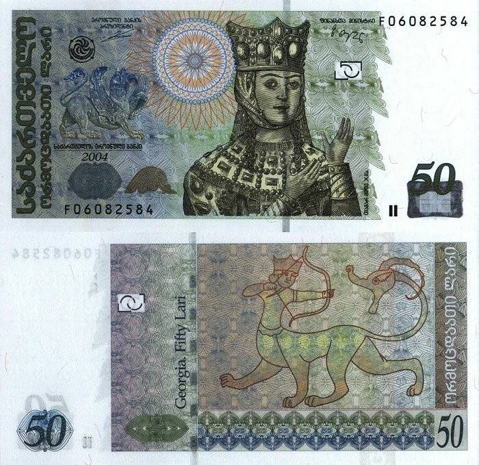 GEORGIA █ bancnota █ 50 Lari █ 2004 █ P-73a █ UNC █ necirculata