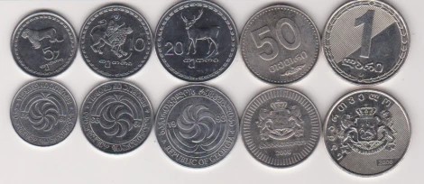 loctul contine toate denominarile, de la 5 tetri la 1 Lari. Disponibila si moneda de 2 Lari (an unic de batere 2006), in oferta separata
