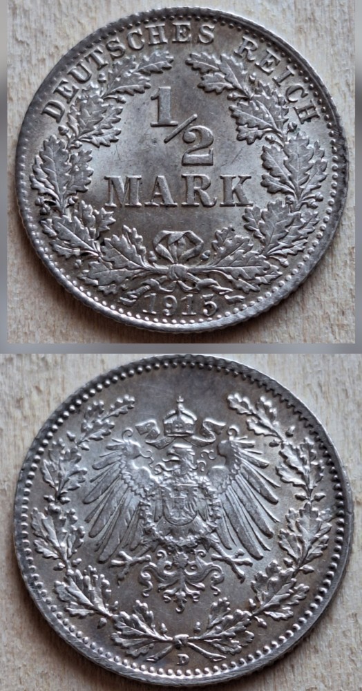 Germania 1/2 mark 1915 D UNC