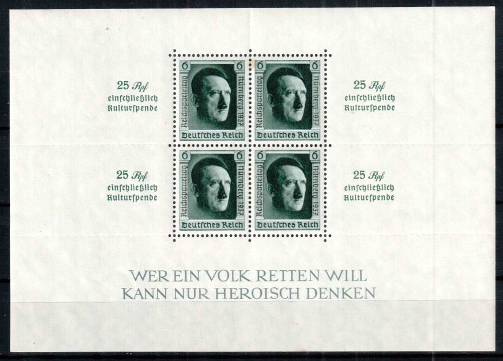 Germania Reich 1937, Mi #650 = Bl 11, Ziua Partidului Nazist, Adolf Hitler, MNH, cota 320 €!