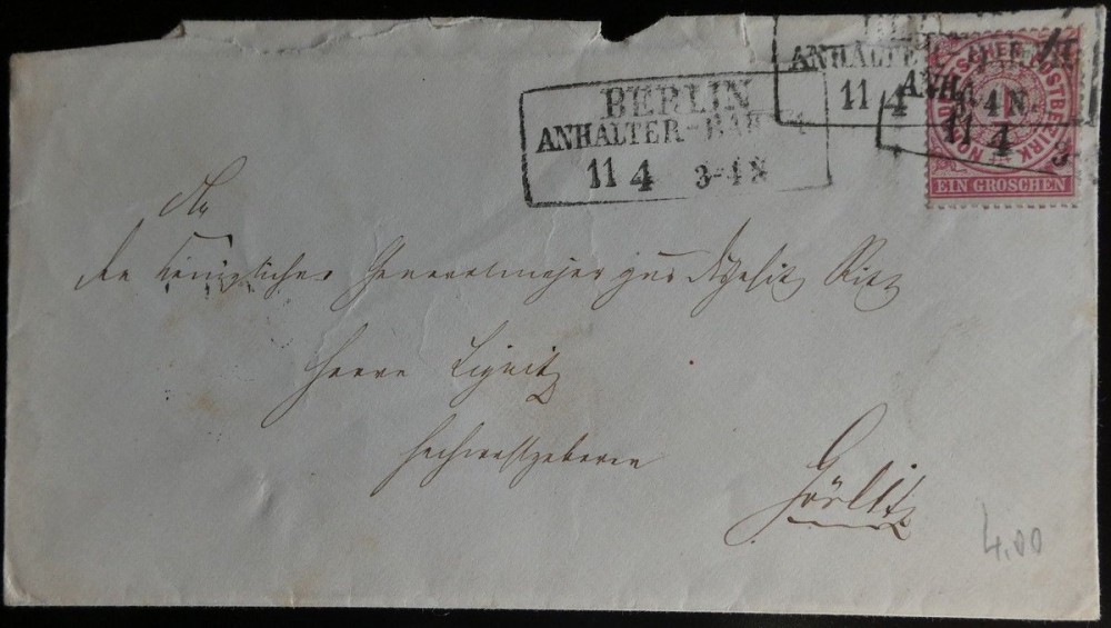 Germany NDP 1869 Cover Mi.16 EF Berlin Anhalter-Bahnhof DB.407