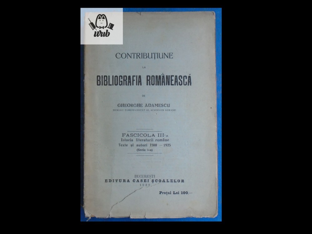 Gh Adamescu Contributiune la bibliografia romaneasca Fascicola III 1928 529 pag