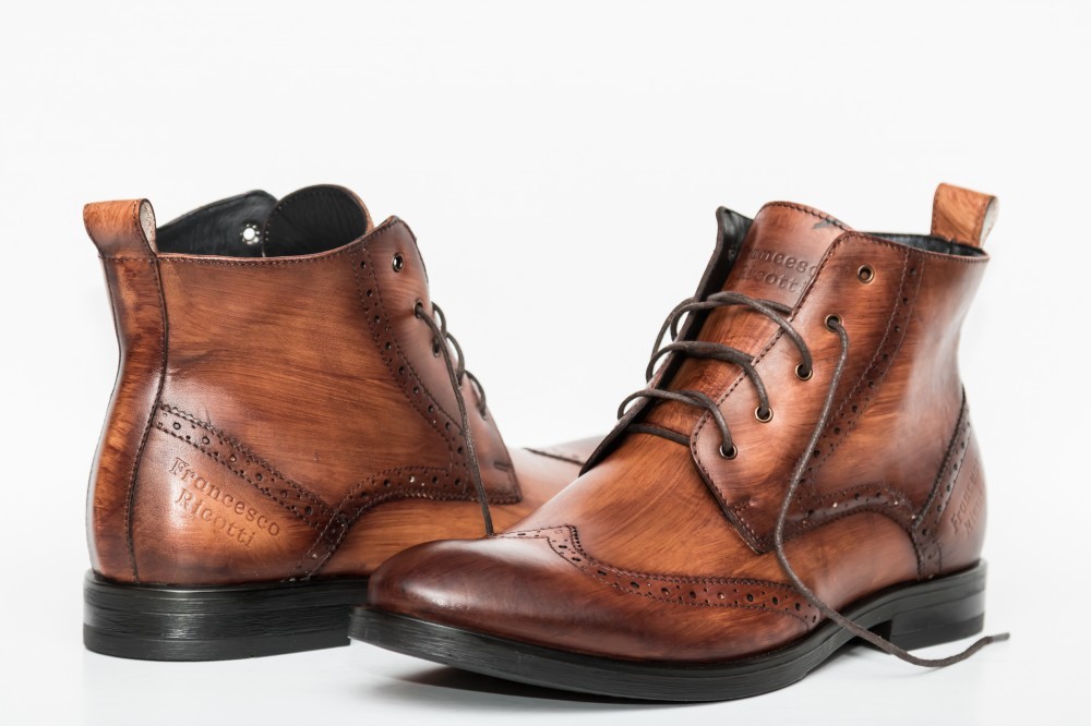 Ghete barbati Francesco Ricotti pictate manual , culoare cognac, marimea 42