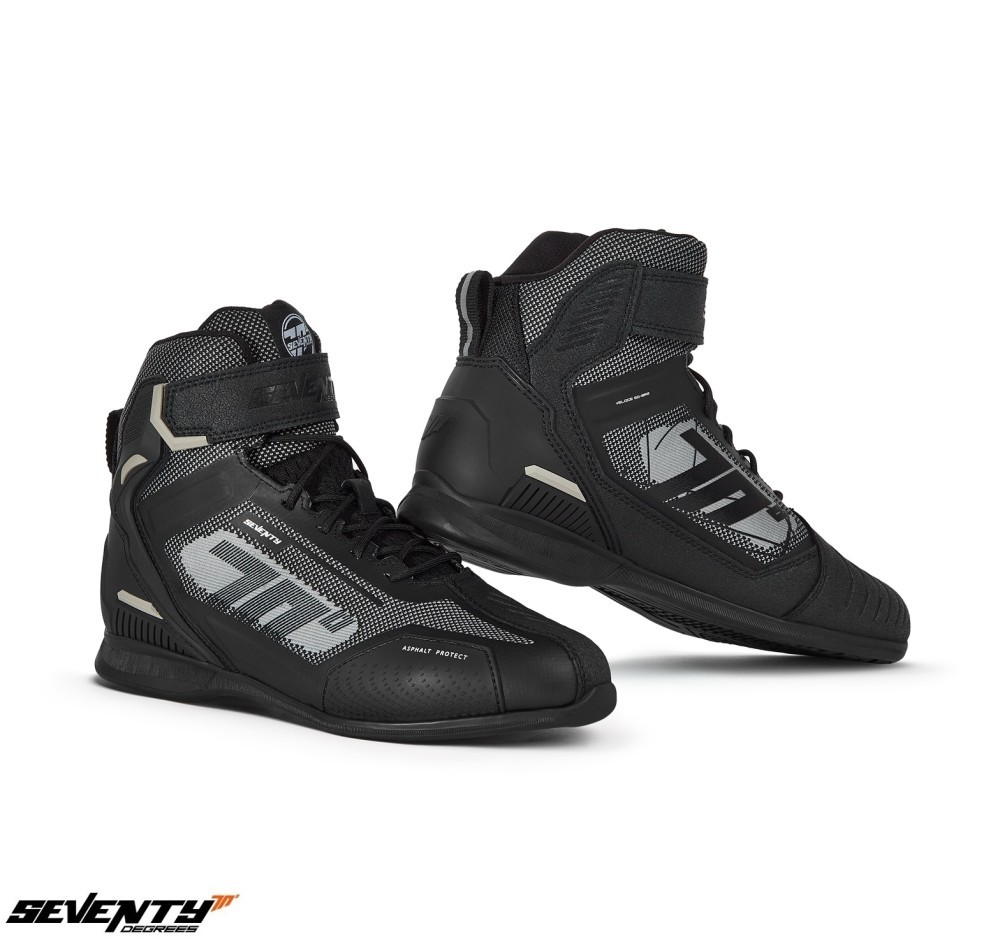 Ghete (cizme) moto Racing Unisex Seventy model SD-BR2 Veloce culoare: negru Caracteristici: • culoare: negru; • marimi disponibile: 36-49; • utilizare: unisex; • ghete omologate: CE Approved: EN 13634:2017; • ghete joase Racing, fabricate din microfibra si materiale AIRKNIT; • interiorul ghetei au o membrana fina fabricata din poliester, ce asigura ventilarea picioroului (breathable); • branturi inlocuibile; • fixarea ghetei: cu sireturi + banda Velcro, cu scai; • banda “Velcro” si acoperire a sistemului de inchidere (cu scai); • elemente reflectorizante in spate si in laterale pentru a creste vizibilitatea; • intarituri la fluierul piciorului, calcai, glezna si in partea frontala a piciorului; • talpa anti alunecare; • insertii pe partea frontala a ghetei, pentru a evita deteriorarea acesteia de catre maneta de schimbator; • ghete intarite la fluierul piciorului, calcai si degete; fixare optima a gleznei pentru protectie crescuta la accidentari. Compozitie: • exterior: – microfibra si materiale AIRKNIT; • interior: – membrana soft “micro-breathable’ din polyester. Greutate 1,2 kg Culoare Negru Mărime 36, 37, 38, 39, 40, 41, 42, 43, 44, 45, 46, 47, 48, 49