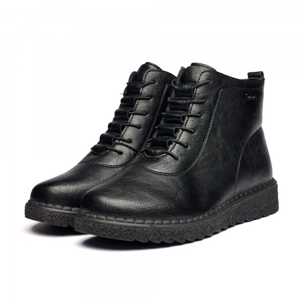 Ghete cu plenitudine crescută, corespund completitudine 8 pe grila dimensională. Fabricate din piele eco de calitate inalta neagră , blână în interior. Un branț anatomic moale care oferă confort la mers, împreună cu o talpă din poliuretan ușoară și flexibilă, fac ghetele Tellus ideale pentru fiecare zi. Modelul are fermoar pentru o încaltare ușoară. Dimensiuni branț 36-23cm, 37-23.5cm, 38-24cm, 39-25.5cm, 40-26cm, 41-26.5cm. Inaltime toc 3 cm Completitudinea pantof 8